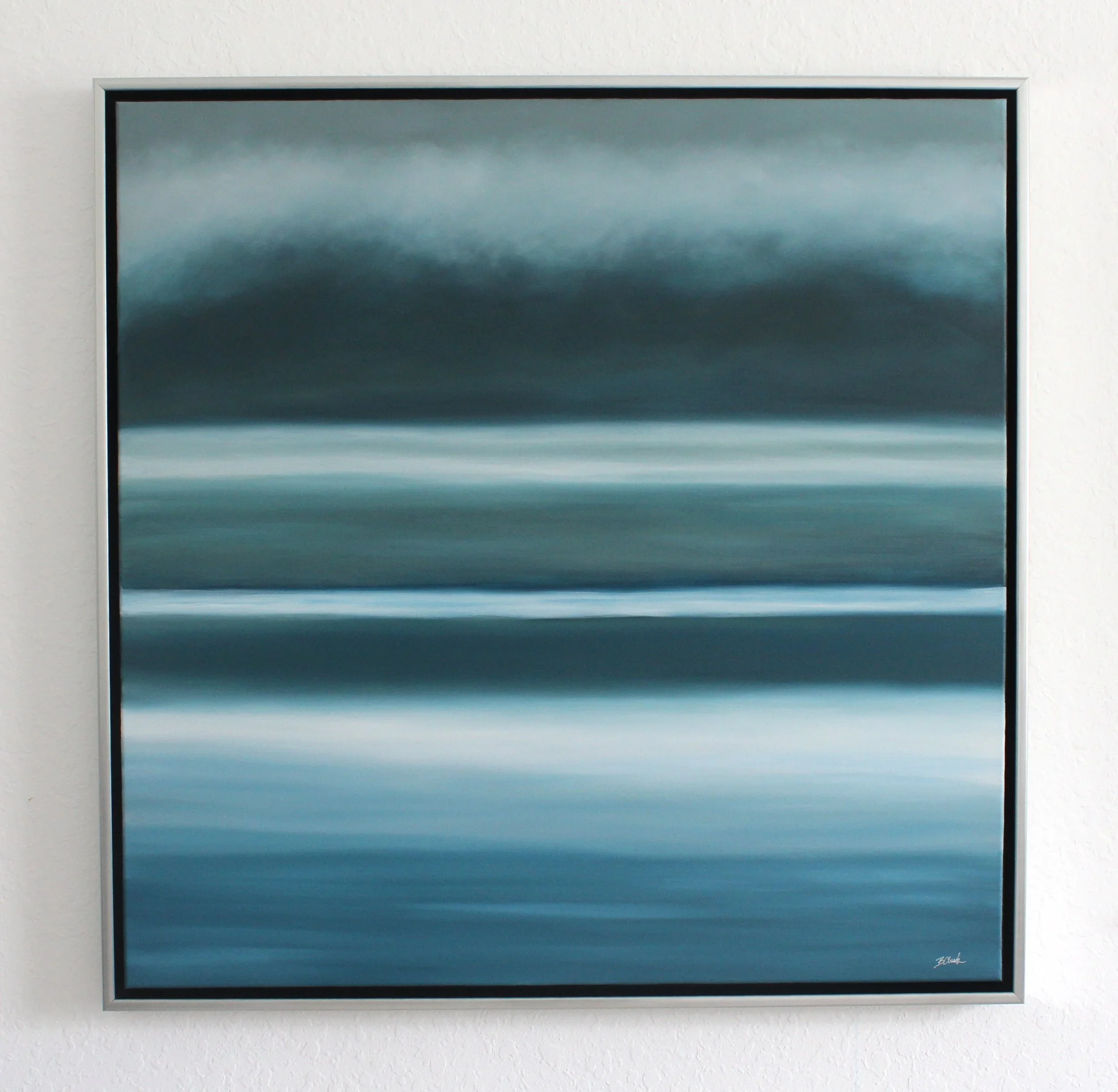 I call this painting “Tempest”. It is a truly powerful storm, building quickly. The sky darkens & all is completely still before the first drop of rain breaks the glassy surface of the sea.